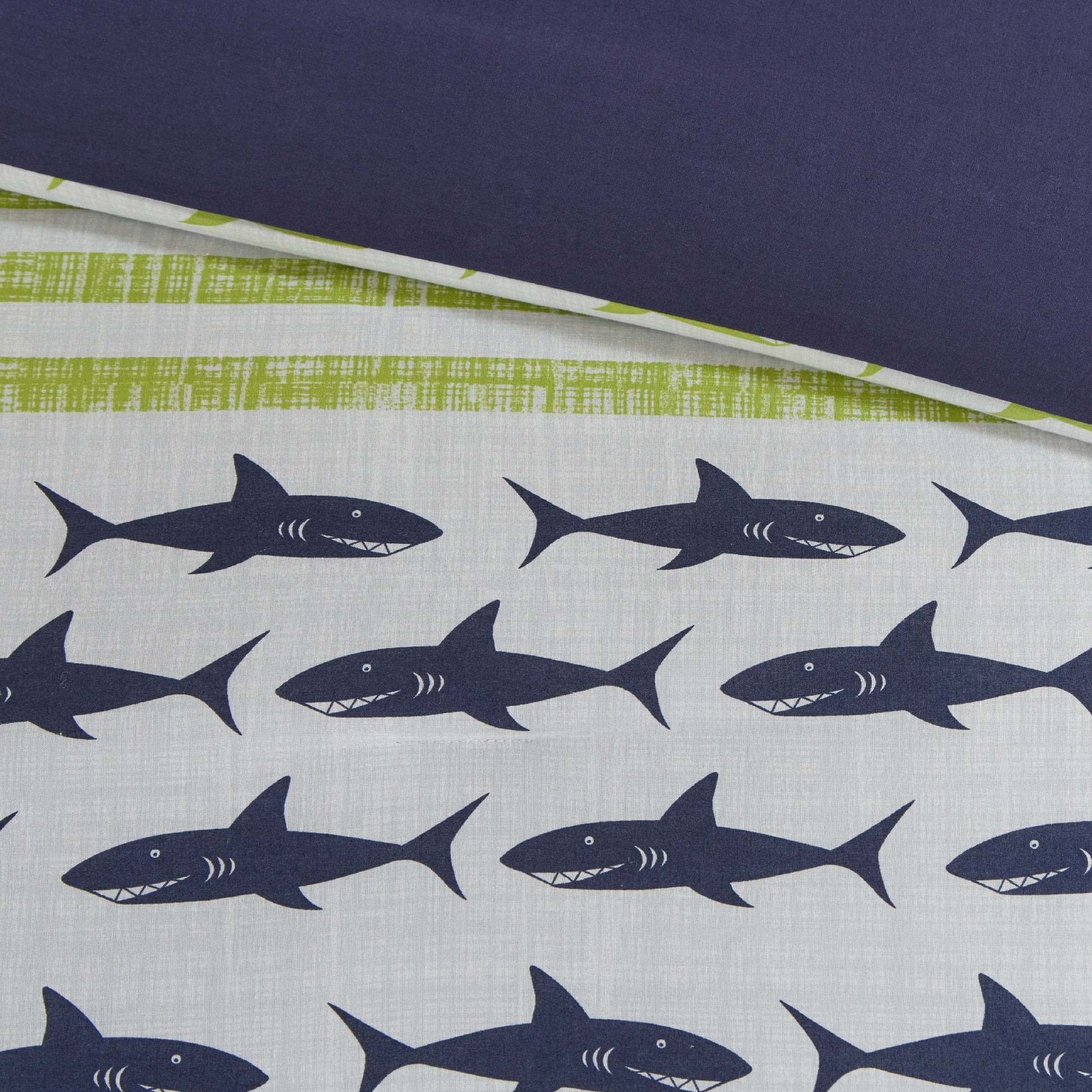 Set copripiumino in cotone verde/blu navy Aaron Shark...