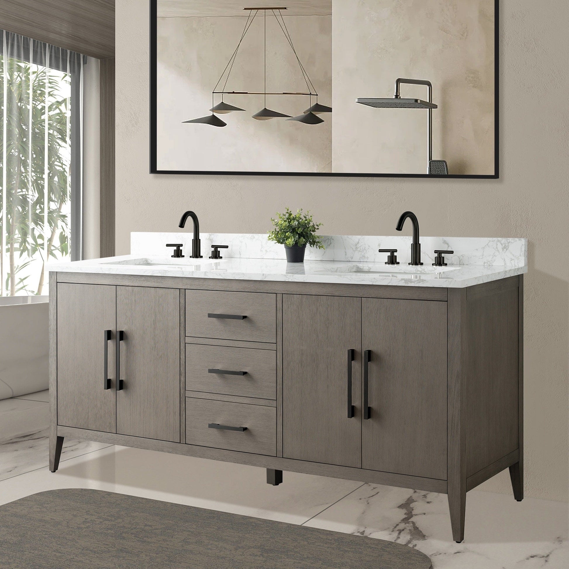 Mobiletto per lavabo da bagno Vanity Art 72 con doppio lavabo e piano in marmo ingegnerizzato