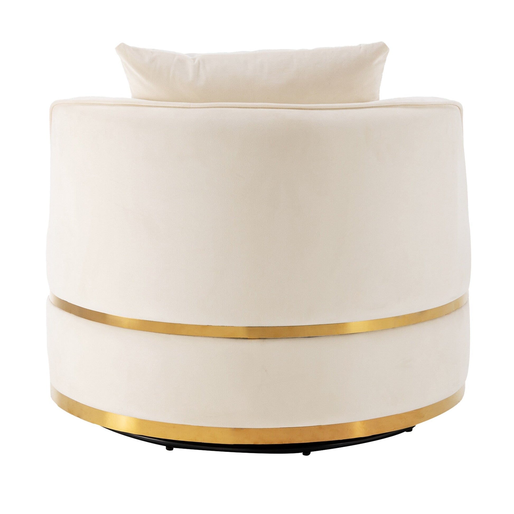 Poltrona girevole a 360° in velluto con cuscino di seduta, poltrona imbottita a botte con base in acciaio inossidabile, sedia da soggiorno