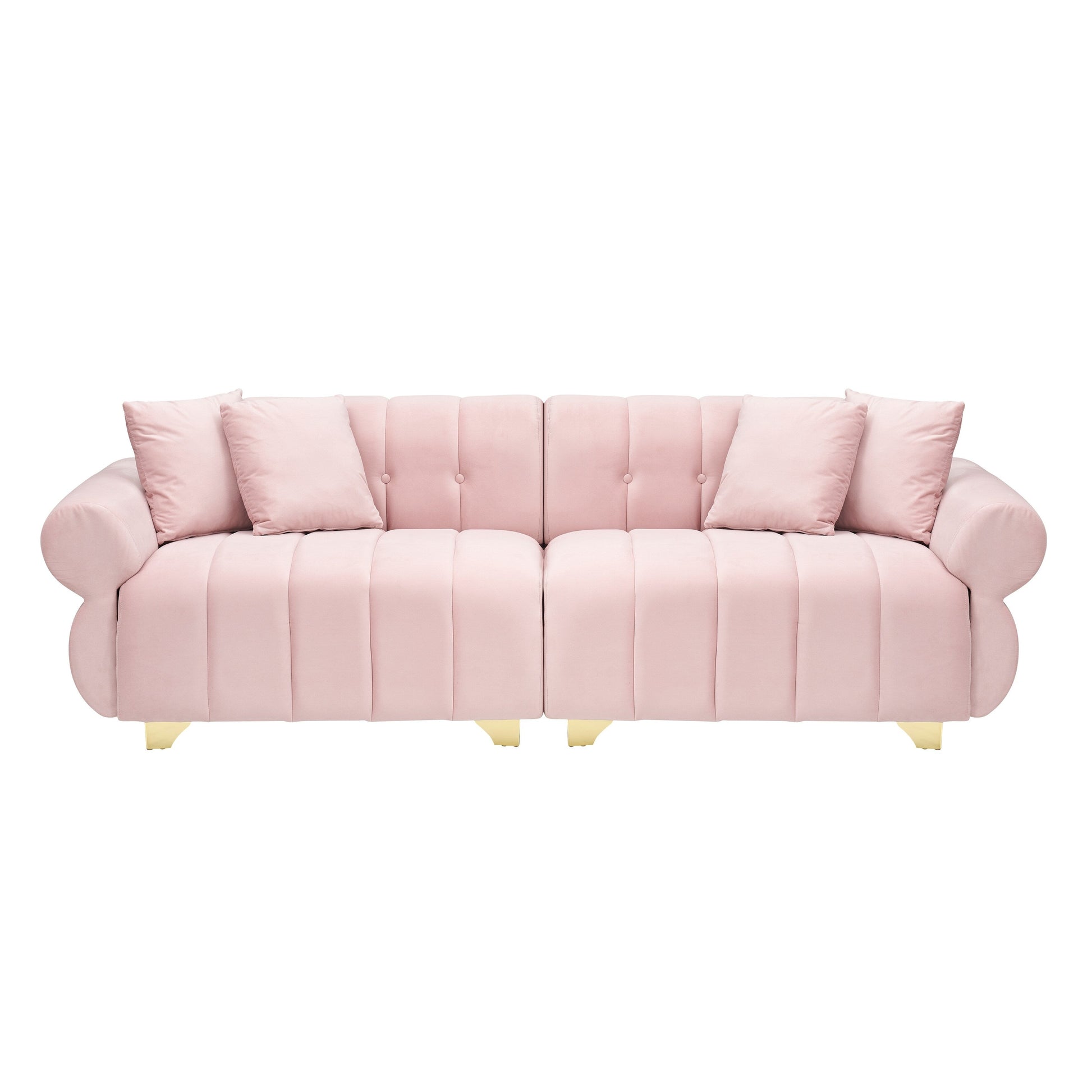 Divano in velluto con braccioli rotondi e schienale...