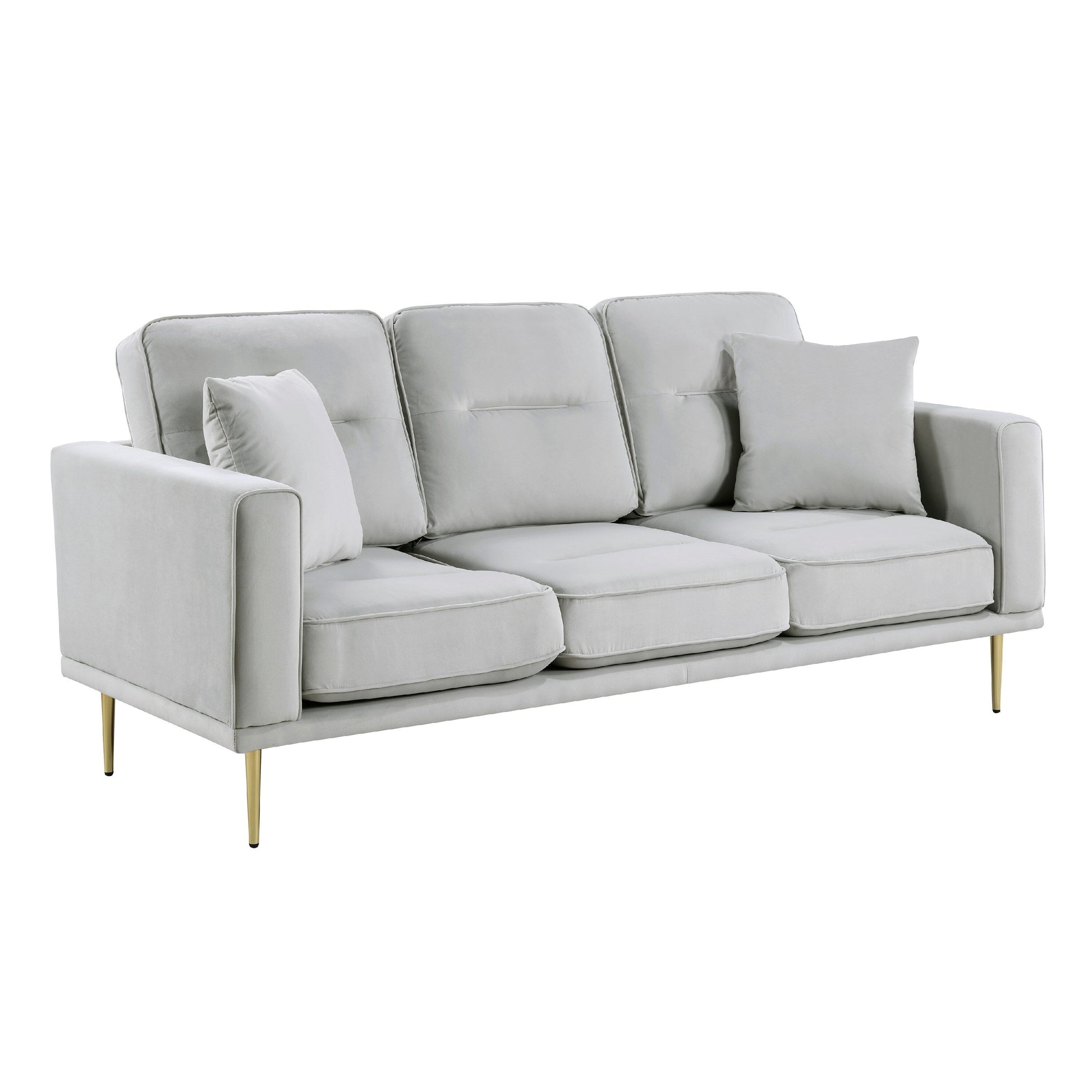 Divano Voxo, seduta imbottita in velluto grigio, due cuscini decorativi, 82 pollici