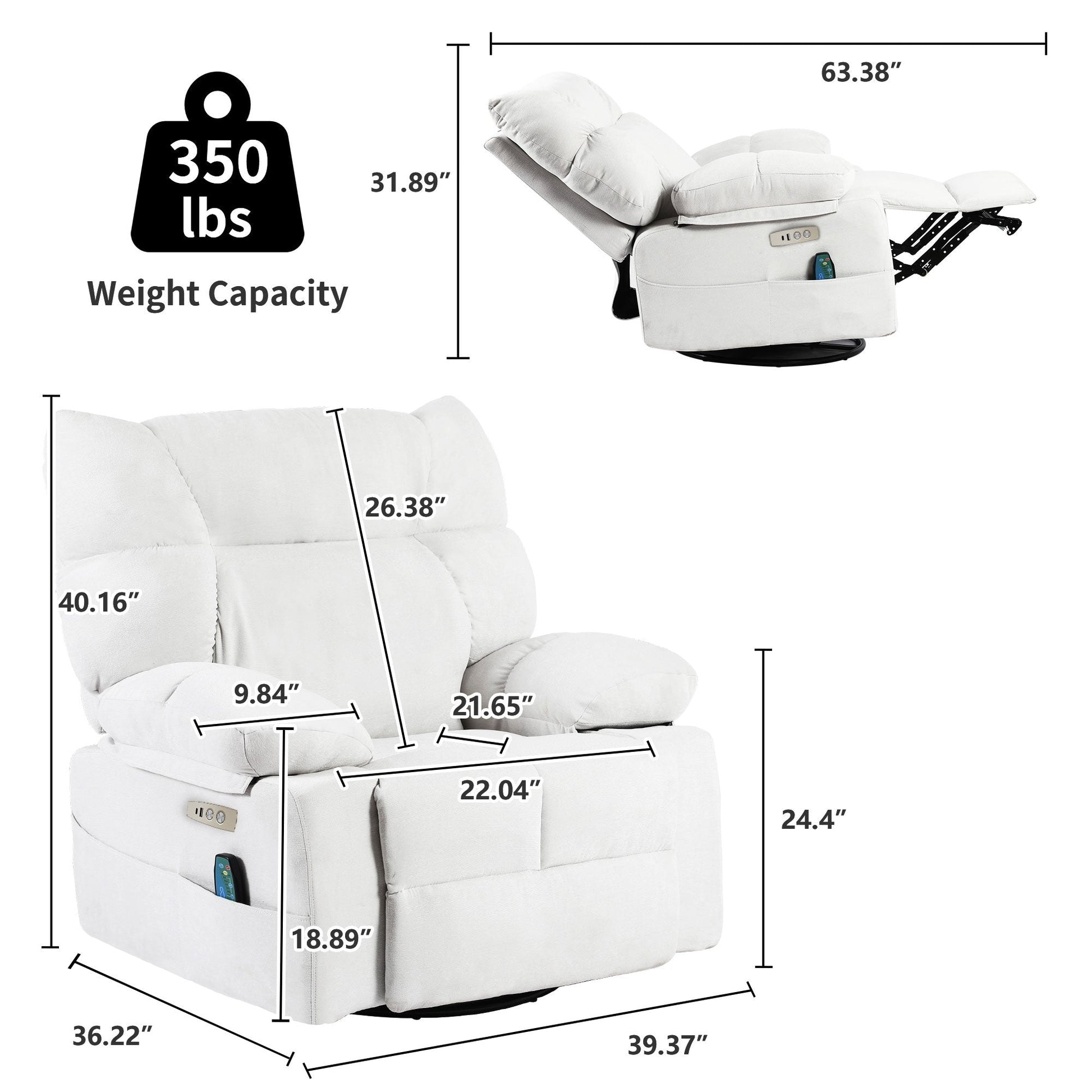 • Dimensioni del sedile: 21,65''P x 22,04''L x 26,38''H
